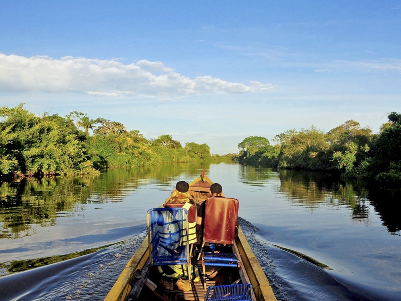Nach einem zeitigen Frühstück fahren Sie zurück nach Rurrenabaque und weiter durch die Pampas nach Santa Rosa del Yacuma. Unterwegs begegnen Ihnen bereits erste Tiere, darunter Faultiere, Capybaras und exotische Vögel. Nach Ihrer Ankunft in Santa Rosa steigen Sie in ein Boot, das Sie zu Ihrer Öko-Lodge bringt. Nach dem Mittagessen unternehmen Sie eine Bootstour und halten Ausschau nach Kaimanen, Capybaras, Schildkröten, Vögeln und Affen.