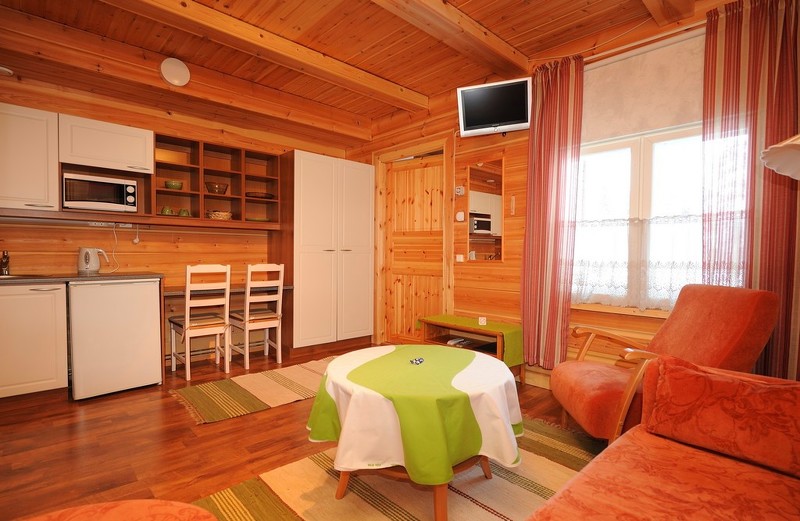 Die nach frischem Holz duftenden Zimmer im Gasthof Saija sind sehr behaglich und geräumig. Sie wohnen in einer eigenen Blockhauswohnung mit einem Schlaf- und Wohnbereich, mit Dusche und WC und eigener Sauna. Für Kinder lässt sich ein Zusatzbett im Zimmer integrieren.