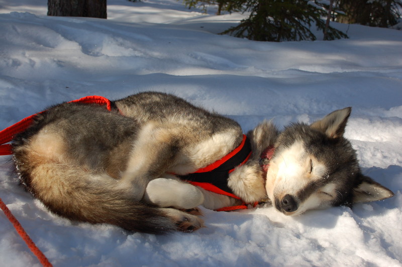 Das Warten hat ein Ende: Heute beginnt die erste richtige Tagestour! Alle Anweisungen vom Vortag kehren Stück für Stück ins Gedächtnis zurück – und bald fahren Sie mit Ihrem Schlitten wie ein erfahrener Musher. Die Tour führt durch verschneite Wälder und über gefrorene Seen, eine Märchenlandschaft aus Schnee und Eis. Das Mittagessen wird am Lagerfeuer zubereitet.