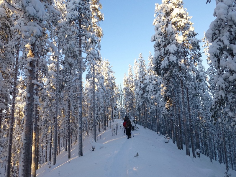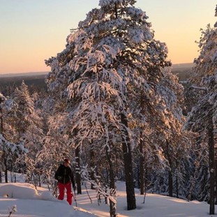 Der Rückweg führt Sie durch die verschneite finnische Landschaft, vorbei an verzauberten Seen und Bergkämmen. In den umliegenden Wäldern lassen sich viele Spuren der scheuen Bewohner wie Luchs oder Elch entdecken. Von Bären hingegen fehlt jede Spur, denn sie halten gerade Winterschlaf. Ihre Mittagspause verbringen Sie wieder picknickend am knisternden Lagerfeuer. Um viele neue Eindrücke reicher, erreichen Sie am Abend die Hütten und können den Tag in der Sauna ausklingen lassen.