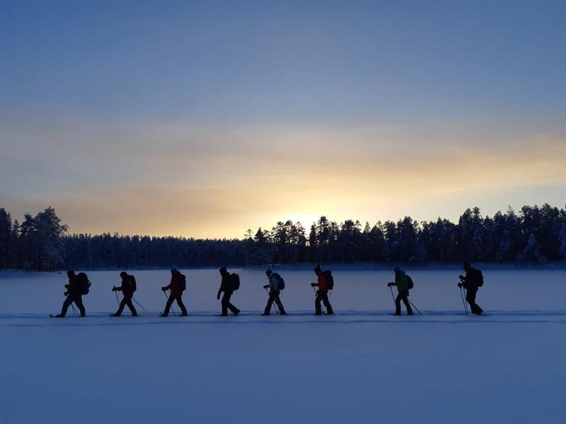 Nach dem Frühstück schlüpfen Sie in die Langlaufskier – eine der beliebtesten Wintersportarten der Finnen. Ihr Reiseleiter bringt Ihnen die Grundtechniken bei und begleitet Sie bei Ihren ersten Schritten. Probieren Sie Ihre neuerlernten Fähigkeiten aus, während Sie durch den verschneiten Wald und am See entlang gleiten. Mit etwas Glück kreuzen Rentiere Ihren Weg oder ihre Spuren zeichnen sich im Schnee ab.