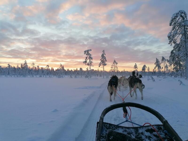 Heute geht es auf eine Huskyfarm! Sie erhalten spannende Einblicke in das Leben und die Ausbildung von Huskys. Nach einer kurzen Fahrstunde mit dem Schlitten startet Ihr Abenteuer in der Wildnis. Zwei Personen teilen sich einen Schlitten, der von vier bis sechs energiegeladenen Hunden gezogen wird. Beim Lenken können Sie sich abwechseln und entspannt die Landschaft genießen. Freuen Sie sich auf einen Saunagang am Abend und ein Abschiedsessen in geselliger Runde.