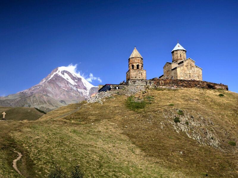 Am Vormittag wandern Sie zu der auf 2.170m hoch gelegenen Gergeti Dreifaltigkeitskirche. Wenn das Wetter mitspielt, können Sie einen Blick auf einen der höchsten Gletscher im Kaukasus erhaschen – den Kasbek (5.054m). Am Nachmittag folgt eine kurze Wanderung zum Gweleti Wasserfall. Sie folgen einem schmale Pfad entlang des Bergflusses und mit etwas Glück kreisen Adler über den Hängen.