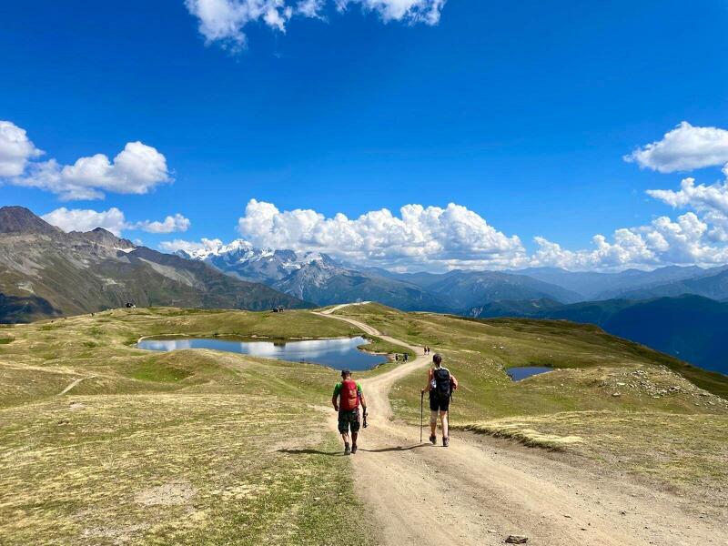 Auch heute erwartet Sie wieder eine Landschaft, die sofort in den Bann zieht. Der Weg zu den Koruldi-Seen führt über weite Wiesenhänge und vorbei an Panoramen, die ehrfürchtig stimmen. Schon früh fällt Ihr Blick auf zahlreiche Gipfel, die nacheinander ins Bild treten – darunter Tetnuldi, Laila und Chatini. Diese und weitere 4.000er schaffen eine Kulisse, die Sie immer wieder innehalten und genießen lässt. Nach der Wanderung fahren Sie weiter nach Mestia, wo der Tag beim Abendessen ausklingt.