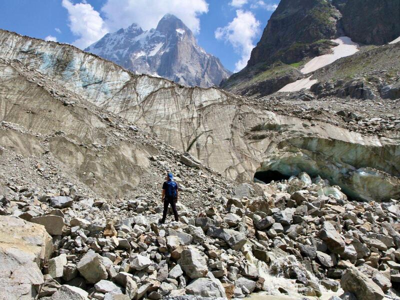 Heute führt der Weg in ein breites Schwemmtal, das vom Wasser des Tschalaadi gespeist wird. Der Gletscher selbst zieht sich von den Südhängen des Uschba und des Tschatyn herab – ein mächtiges Eisfeld, das nah an den Felswänden liegt und gut zeigt, wie aktiv die Berge hier sind. Zurück in Mestia fahren Sie mit der Seilbahn auf den Berg Suruldi. Von dort reicht der Blick über Schchara, Tetnuldi, Uschba und Schchelda, die prägendsten Gipfel der Region.