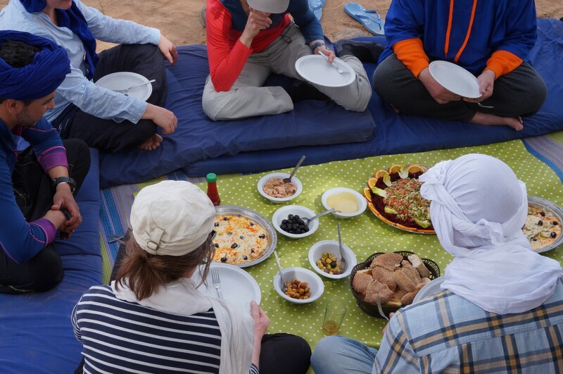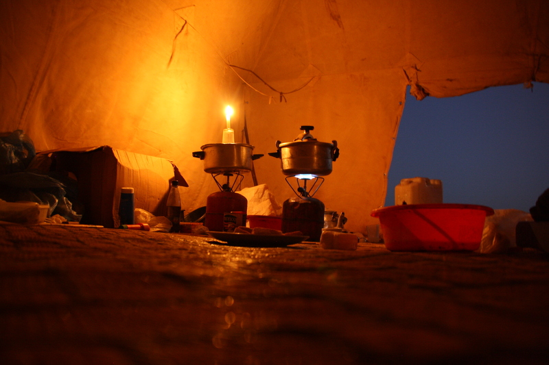 Das Zeltcamp besteht aus den gestellten 2-Personen-Zelten, einem großen Berberzelt, in dem gekocht und – je nach Wetterlage – gespeist und gesessen wird, sowie aus einem Toilettenzelt ein klein wenig abseits des Camps. Wer unter freiem Himmel schlafen mag, kann das gern tun!