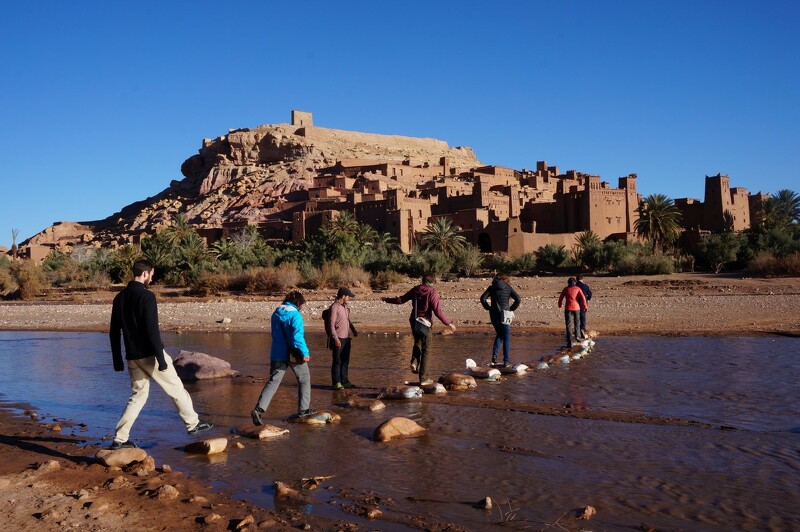 Früh am Morgen verlassen Sie das Camp. Über weite Ebenen, die mit Tamarisken durchsetzt sind, zieht Ihre Karawane in Richtung Mhamid. Allmählich nähern Sie sich den ersten Siedlungen – hier endet Ihr Wüstentrekking. Sie verabschieden sich von der Karawane, den Dromedarführern und natürlich auch von den Tieren. Die Rückfahrt führt durch das Dra-Tal via Zagora und Ouarzazate nach Aït Ben Haddou zu Ihrem Hotel.