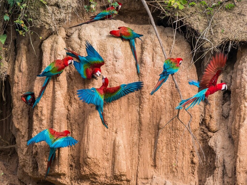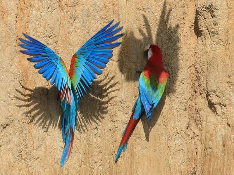 Noch vor dem Frühstück geht es zu einem ganz besonderen Ort: einer Papagaiensalzlecke. Hier versammeln sich regelmäßig dutzende farbenprächtige Aras, um die mineralhaltige Erde aufzunehmen – ein faszinierendes Schauspiel. Nach dem Frühstück an der Lehmlecke fahren Sie mit dem Boot zurück nach Lucerna. Von dort geht es mit dem Fahrzeug weiter zum Flughafen von Puerto Maldonado.