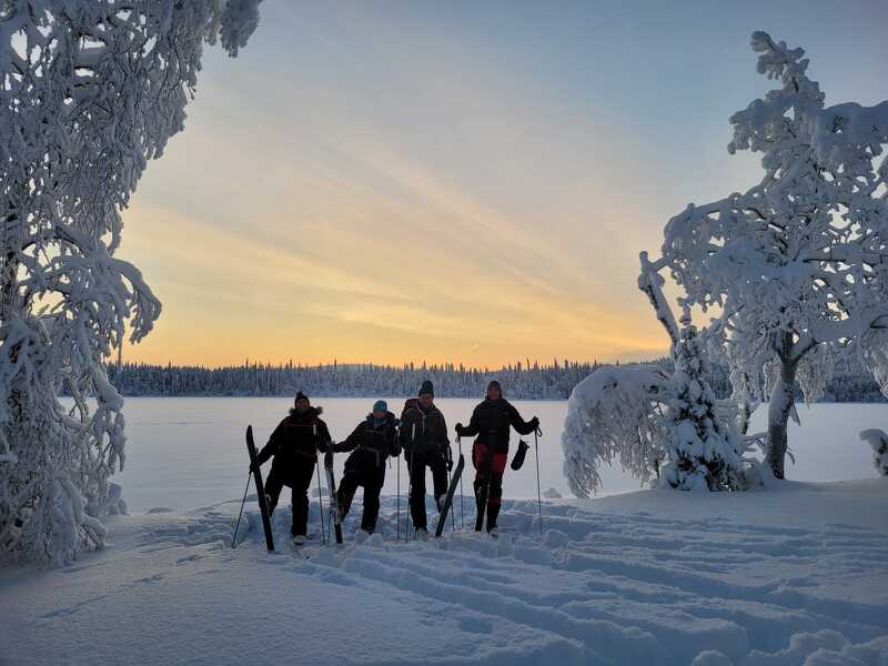 Die Menschen in Nordeuropa lieben es: Eisangeln, ein ganz besonderer Volkssport. Mit Eisbohrer, Eisangeln und Köder gehen Sie heute auf den zugefrorenen See und angeln Barsche. Mittagessen gibts am Lagerfeuer. Wer lieber einen zweiten Tag Schneeschuhwandern oder Backcountryski fahren will, kann dies auch tun. Zum Abend wird wieder die für Sie schon gewohnte Routine vollzogen: Hunde versorgen, Wasserholen, Kochen, Abendessen und entspannen in der Sauna.