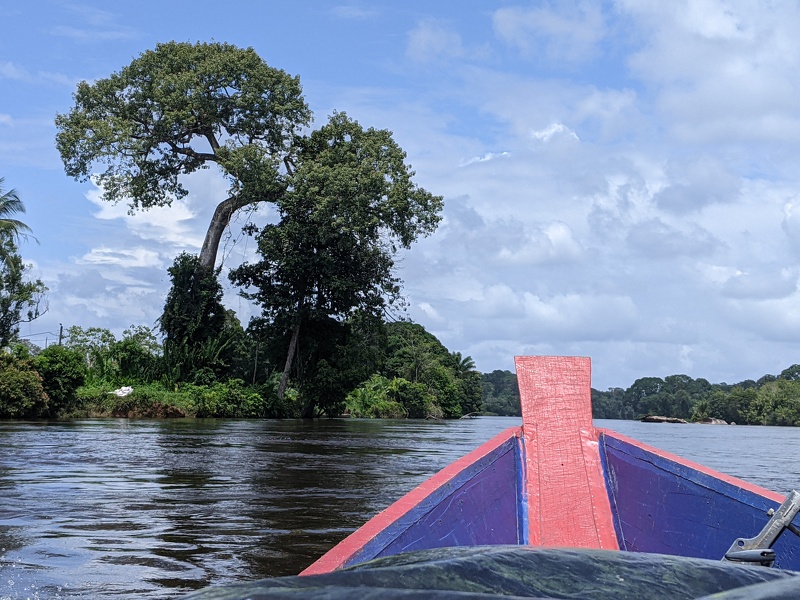 Bei Sonnenaufgang starten Sie ins Landesinnere zur Ihrer Lodge, die nur per Boot erreichbar ist. Zuerst geht es mit dem Bus nach Atjoni, dann gleiten Sie im motorisierten Korjaal (Einbaumboot) über den Suriname-Fluss. Die Fahrt führt Sie hinein ins Gebiet der Maroon, Nachkommen geflohener Sklaven. Nach der Ankunft in der idyllischen Flusslodge können Sie in den Hängematten entspannen, die Ruhe der Natur genießen und in den nahegelegenen Stromschnellen einen Sprung ins kühle Nass wagen.