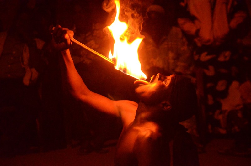 Morgenspaziergang zur Fledermaus-Höhle. Anschließend steht eine längere Fahretappe auf dem Programm, doch immer wieder halten Sie, vertreten sich die Beine, besuchen eine Kente-Weberei oder erkunden ein Dorf. So steckt auch dieser Tag voller neuer Eindrücke. Nach Einbruch der Dunkelheit folgt ein Feuertanz: Die Voodoosi hantieren mit glühender Kohle und setzen ihre Körper den Flammen aus – ohne Spuren zu hinterlassen. Ein spektakuläres Ereignis, das selbst kritische Beobachter staunen lässt.