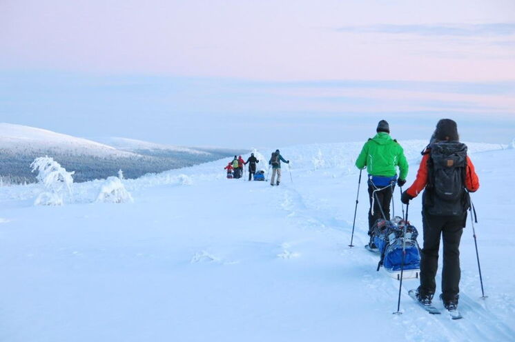 Startpunkt Ihrer Tour ist das kleine finnische Dorf Kilpisjärvi, direkt am Dreiländereck. Dort erhalten Sie vom Guide Skiausrüstung, verteilen Verpflegung, Ausrüstung und persönliches Gepäck auf Pulkas und Rucksäcke und starten ins Abenteuer. Querfeldein skiwandern Sie in einem von Menschen unbewohnten Areal von 2250 km². Selten treffen Sie auf die Spuren anderer. Es geht bergauf, bergab, von Wildnishütte zu Wildnishütte. Sie legen etwa 20 km täglich zurück, übernachten in einfachen, aber warmen, urig-gemütlichen Wildnishütten ohne Strom und fließend Wasser. Wer will, hat die Gelegenheit, winterliches Zelten auszuprobieren.