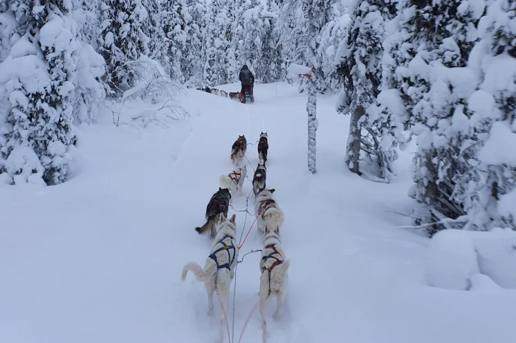 Diese Tour ist ideal für Naturliebhaber: Im Puolva Naturreservat gleiten Sie mit Hundeschlitten, Schneeschuhen oder Skiern lautlos durch eiszeitliche Landschaft, lesen Spuren, beobachten Tiere und versuchen sich beim Eisangeln am See. Familien mit Kindern kommen besonders auf Ihre Kosten: Fitte Kids ab 12 Jahren können an der Tour teilnehmen, steuern sogar ihren eigenen Schlitten. Dank kleiner Gruppen genießen Familien oft eine private Tour. Für Kinder gibt es eine Ermäßigung.